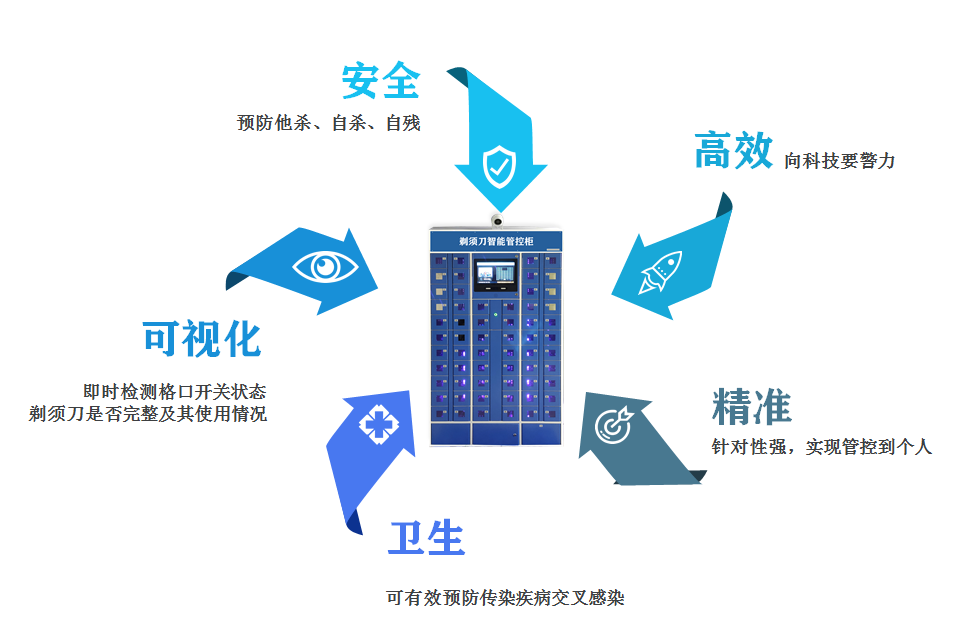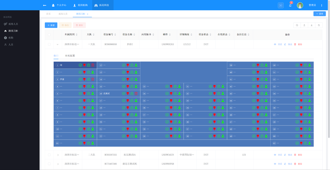 该产品主要用于监狱、戒毒所、看守所等特殊场所,可供监所人员使用与管理,是真正实现了集生物识别、物品存储、消毒排湿、无线充电、实时监测及信息储存管理于一体的智能高端设备。做到定人、定物、定时分配,自动实时监测预警及安全充电、消毒通风排湿,全流程统计分析,实现了一张图可视化 “连的上,看得见,管得住,可追溯,可运维” ,促使监所系统“智慧管理、节省警力、提升效率、安全可控”。